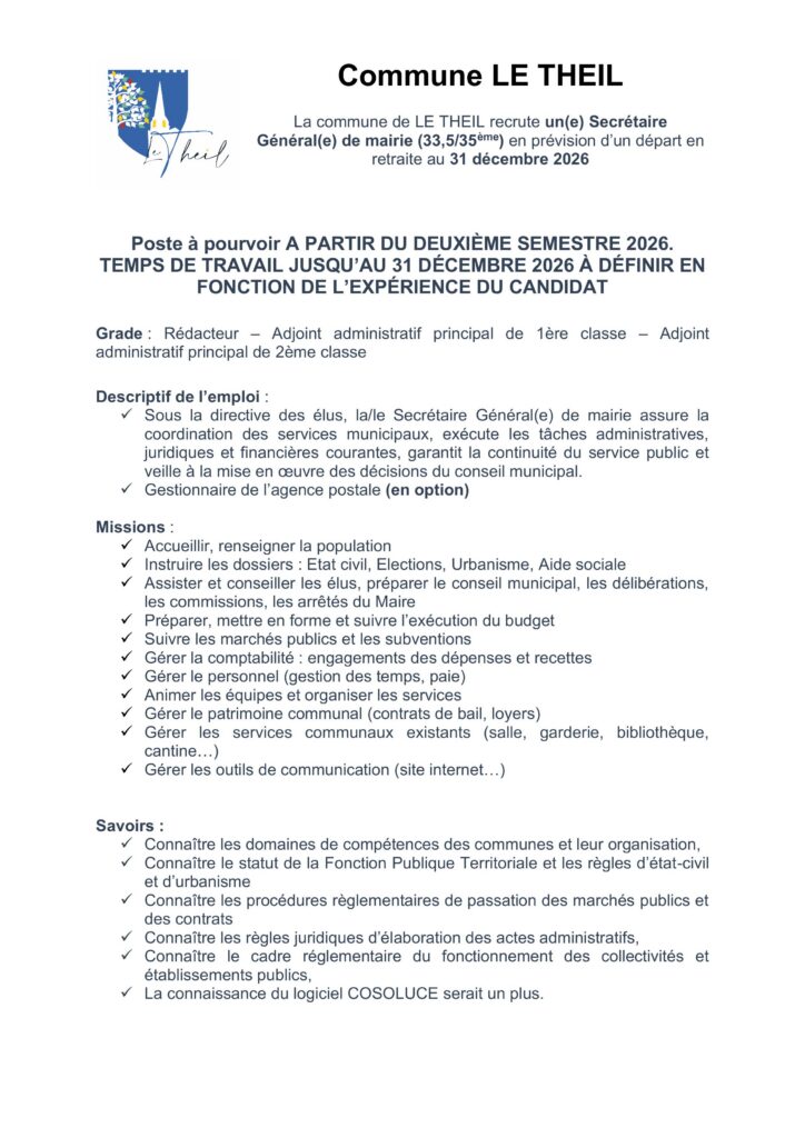 Poste à pourvoir le 1er avril 2026.
